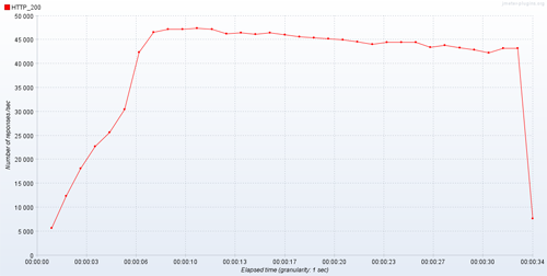 Throughput went up very quickly and was serving upwards of 47,000 requests per second.